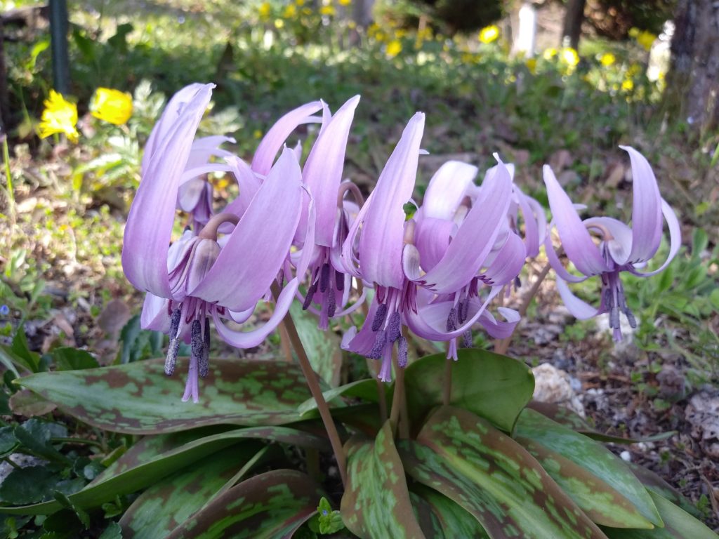 カタクリは初恋の乙女をイメージさせるとか。でも今年のカタクリは元気よくダンスを踊っているみたい。うららかな春の陽気はカタクリまでも飛び跳ねるのかも。