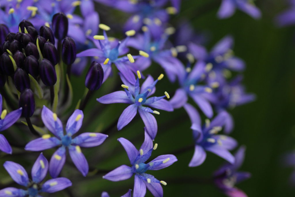 紫色の星形の花、シラーはその色合いから文字通りブルーなイメージが際立つ。花言葉は寂しさ。