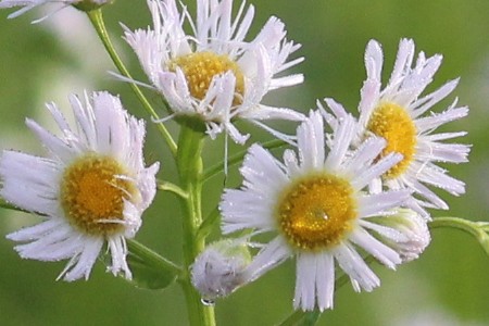 素朴で清楚 In 2022.05.16 この季節、野原などに群生するヒメジョオン。一見きれいな花なんだけれども、群生はその土地の草刈りをしないで放ったかしてある証でもある。花言葉は素朴で清楚。田舎で暮らす人にとっては外仕事を連想させる花でもある。